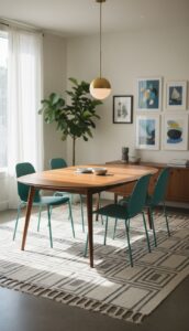 Mid-century modern dining rooms offer timeless appeal with their clean lines and vibrant accents. This enduring style effortlessly blends form